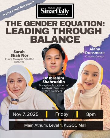 Join us for “The Gender Equation: Leading Through Balance”, a live panel discussion by Sinar Daily featuring inspiring speakers Sarah Shah Nor (Director, Cuura Malaysia Sdn Bhd), Dr Ibrahim Shahruddin (Vice President, Malaysian Association of Aesthetic Dentistry) and Alana Dunsmore (Content Creator).